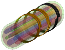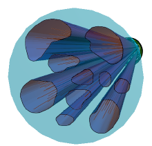 Fascicles populated with axonal trajectories modeled as lines.