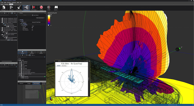 Powerful new 5G simulation toolbox in V3.2: Design, optimization and analysis of a quasi-Yagi phased array embedded within an MTE structure (placement, phase/amplitude excitation patterns, feeding, compliance).