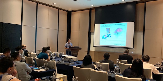 中国科学院深圳先进技术研究院的李烨博士出色地做了题为“超高场MRI的射频安全性”的首场演讲。他向听众介绍了超高场(UHF)磁共振成像(MRI)以及该技术在神经科学和大脑研究方面的优势,并提供了一些中国科学院“Pre-14T-人体MRI”项目中崭新和令人兴奋的洞见。李烨博士还解决了UHF MRI的两个关键挑战,即大体积横截面中的发射B1 +场的不均匀性,以及组织中的射频(RF)功率沉积(即比吸收率)。接着他描述了使用 Sim4Life进行计算建模和仿真,以及使用来自ZMT姊妹公司Schmid&Partner Engineering AG(SPEAG)的灵活且高精度的近场扫描仪进行实验验证,或使用来自IT’IS 基金会(IT’IS) 内置了传感器的躯干模型来量测MRI激发的场,如何能够帮助解决问题。
